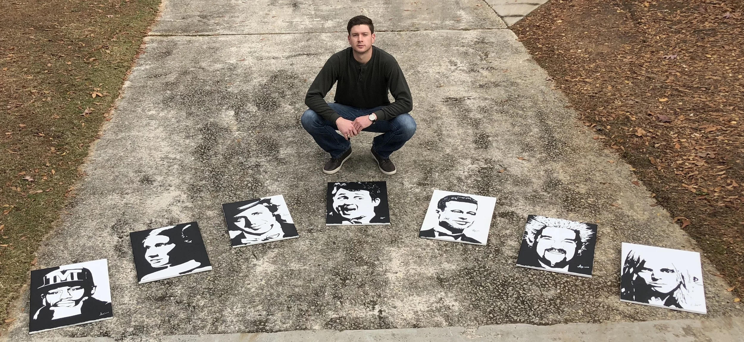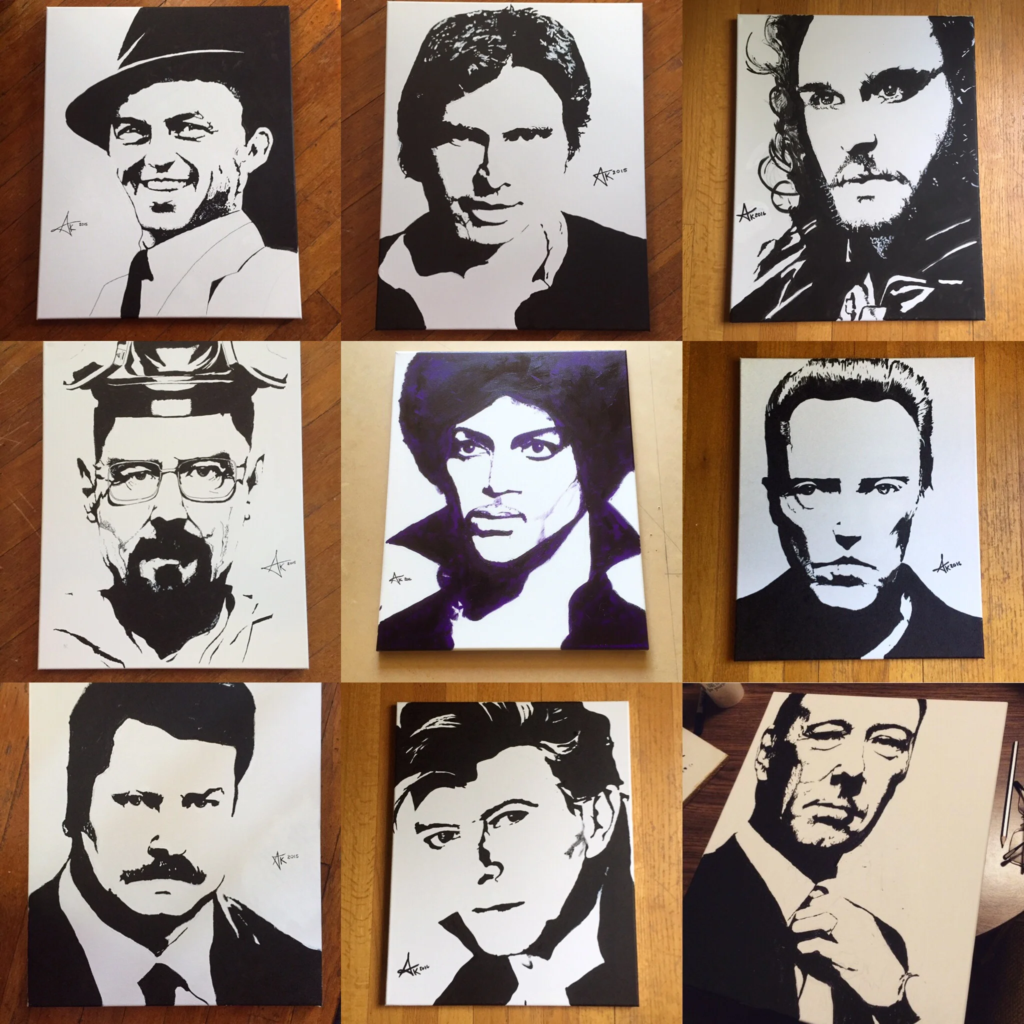 This picture showcases some of the work I have done upon request and for myself. From left to right it is: Floyd "Money" Mayweather, Carrie Fisher, Gene Wilder, Will Muschamp, Brad Pitt, Guy Fieri, and Tom Petty.